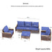 7 Pieces Patio, Wicker Dining Set With Removable Cushions Cotton And Rattan - Blue130.82 lb