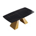 70.87" Modern Artificial Stone Curved Metal Leg Dining Table, Can Accommodate 6-8 People - Black / Gold