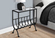 Integrated Magazine Rack: Equipped with a sturdy metal magazine rack, this table provides convenient storage for books and magazines, keeping your space organized.