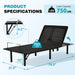 Adjustable Metal Bed Base With Head And Foot Incline, Anti Snore Feature, Wireless Control, Twin Long - Antique Black38.0"W x 80.0"D x 11.3"H - 72.6 lb