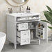 • Durability and Functionality: Constructed from high-quality materials, this vanity is designed for durability and functionality, featuring soft-close doors and a water-resistant paint finish to protect against water stains and dust.