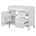 Ample Storage: This vanity offers ample storage options, including two drawers for daily necessities, a tip-out drawer for small items, and a cabinet with shelves for medium to large items. Additionally, a cabinet door organizer expands usable space, catering to various storage needs efficiently.