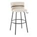 Chic Modern Design: The Cinch Barstool by LumiSource boasts a unique design that combines a metal accent bar with a padded upholstered seat, offering both style and practicality for your space.