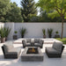 - Comprehensive Set: Includes a modular sofa, 2 club chairs, and a 40,000 BTU propane fire pit with a matching cover.