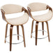 Curvini Mid-Century Modern Fixed Height Counter Stool With Swivel (Set of 2) - Walnut / Cream20.5"W x 21.0"D x 34.5"H - 15.5 lb