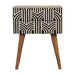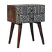 - Solid Wood Edessa Bone Inlay Bedside - This stunning boho-inspired bedside table is crafted from 100% solid mango wood and features a lovely finish. It also boasts bone inlay on the front drawers and sleek Nordic-style legs. The bone inlay is ethically sourced from deceased animals, including camels, goats, and buffaloes.