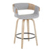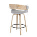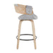 Quality Materials: Constructed with white washed wood swivel legs and a durable chrome footrest, this stool combines functionality with style. The cushioned seat is upholstered in stylish woven fabric for added comfort.