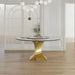 Luxury Round 59" Sintered Stone Dining Table With Stainless Steel Hourglass Base, Scratch & Heat Resistant Surface - Golden / White
