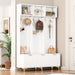 - Versatile 3-in-1: This exquisite hall tree harmoniously combines coat racks, shoe storage compartments, and numerous storage cubbies, providing a comprehensive organization system for your entryway.