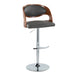 Versatile Design: The Pino Adjustable Barstool by LumiSource features a polished bent wood back and upholstered seat, combining mid-century modern styling with functional design elements for a unique barstool.