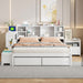 Full Size Platform Bed With Multi Functional Storage Space, Nightstand, 2 Drawers, USB Ports And Desk - White84.9"W x 85.7"D x 30.1"H - 211.6 lb