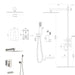 • Complete Package: Includes 12-inch square rain shower head, shower arm, handheld shower, tub spout, hose, holder, and valve.