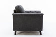 • Elevate your home's interior with the Stanton Linen Loveseat. This exquisite piece of furniture seamlessly combines classic aesthetics with modern comfort, making it the perfect addition to any living room or entertainment space. The flared tufted arms not only add a touch of sophistication but also provide extra comfort and support for your arms as you relax. The dark finish solid wood legs not only provide stability but also complement the upholstery, creating a harmonious and luxurious aesthetic. Featuring a comfortable and supportive seating experience for lounging with a good book or entertaining guests. Whether you are hosting a gathering or simply relaxing after a long day, this chair is your ideal companion.