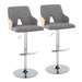 Stella - Contemporary Adjustable Barstool Stool With Swivel With Rounded T Footrest (Set of 2) - Chrome / Natural / Light Gray