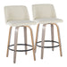 Toriano - Contemporary Fixed Height Counter Stool Swivel With Round Footrest (Set of 2) - Whitewashed / Cream19.0"W x 17.5"D x 35.5"H - 14.0 lb