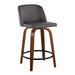 Toriano - Mid-Century Modern Fixed Height Counter Stool With Swivel With Round Footrest (Set of 2) - Walnut / Gray