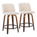 Toriano - Mid-Century Modern Fixed Height Counter Stool With Swivel And Round Footrest (Set of 2) - Walnut / Cream