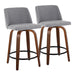 Toriano - Mid-Century Modern Fixed Height Counter Stool With Swivel And Round Footrest (Set of 2) - Walnut / Gray