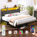 Upholstered Platform Bed Frame With Storage Drawers, USB Ports, LED Lights