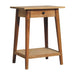Click to expand Tap to zoom Woven End Table - Brown by Artisan Furniture Sold out Original price $320.46 - Original price $320.46 Original price $320.46 $320.46 - $320.46 Current price $320.46 | / Artisan Furniture Solid Wood Woven Solid Wood End Table - This end table is the perfect addition to any room. Suitable for narrow hallways as an ideal place to store small items like keys and address books. It is constructed from 100% solid mango wood and has a lovely oak-ish finish with a jute bottom shelf. Other features include tapered legs and a round shiny knob for the drawer. Product Dimensions- Height: 23.62 in Length: 13.78 in Width: 17.72 in Weight: 17 lbs Features: 100% Solid Mango Wood,Oak-ish Finish,Jute Bottom Shelf,Tapered Legs,Round Shiny Knob,Functional Storage Woven End Table - Brown17.72"W x 13.78"D x 23.62"H - 17.64 lb Quantity Sold out This item is a recurring or deferred purchase. By continuing, I agree to the cancellation policy and authorize you to charge my payment method at the prices, frequency and dates listed on this page until my order is fulfilled or I cancel, if permitted.