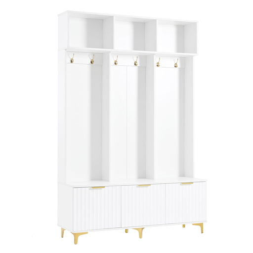 Modern Luxurious Design: This hall tree is a bright and glamorous storage cabinet with high gloss fluted textured doors, paired with shiny golden ...