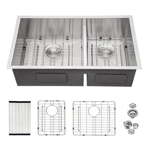 [Double Bowl] Offers a 50/50 split double basin for versatile kitchen tasks. [Sturdy Construction] Made of 16 Gauge T-304 stainless steel for enha...