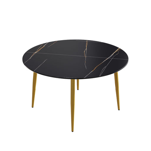 Elegant Design: The black round tabletop with golden metal legs creates a stunning focal point in any dining room. Durable Surface: Made from sint...
