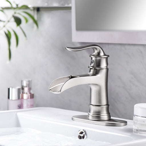 Waterfall Spout: Creates a visually pleasing waterfall effect, enhancing your bathroom's tranquility. Elegant and Modern Design: Brushed nickel fi...