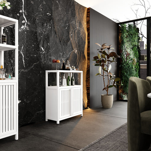 Compact Design: This bar cabinet features a two-door design, providing a sleek and modern look that fits well in various kitchen or dining sp...