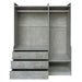 Revamp your wardrobe with our Open Wardrobe, designed to combine style and practicality effortlessly. Featuring two robust hanging rods, five versatile shelves (including two at the top for maximum storage), and three spacious drawers, this wardrobe provides ample room for all your clothing and accessories. Its modern design not only keeps your essentials organized and accessible but also adds a chic touch to any space.