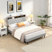 Modern Queen Size Upholstered Platform Bed Frame With Button Tufted Linen Fabric Headboard And USB Ports - Light Gray73.48 lb
