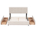 Queen Size Upholstered Platform Bed With Classic Headboard And 4 Drawers, No Box Spring Needed - Beige