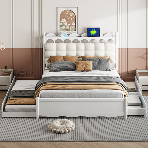 Storage Platform Bed, With 2 Big Drawers, Trundle, One Set Of Sockets & USB Ports