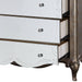 Mirrored Drawer Fronts: The drawers have mirrored fronts that reflect light, creating a radiant effect, while full-extension side metal glides ensure smooth and effortless operation.