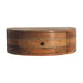 - Large Wall Mounted Rounded Bedside - The bigger brother to IN1296. This wall-mounted bedside has been constructed from 100% solid mango wood in an oak-ish finish and offers a unique shaped design with rounded edges. It can be easily mounted on the wall without the fuss of legs. It also features 1 drawer perfect for storing any bits and pieces and keeping them close before bedtime.