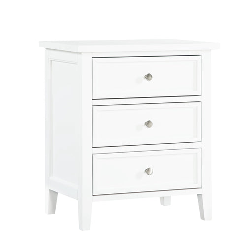 Transitional farmhouse nightstand 3 drawers on smooth, telescoping metal glides Attractive framed door faces Powder-coated steel cup handles Made ...