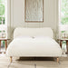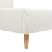 Faux Boucle Upholstery: The bed is covered in faux sherpa-like boucle fabric, offering a cozy feel and adding an interesting texture to the piece.