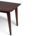 - Supporting the tabletop are robust, solid rubberwood legs that are angled and tapered with a rounded-square shape, and an inset table apron that adds a refined touch.
