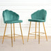 Shell Shape Velvet Bar Chair With Gold Plated Metal Legs (Set of 2) - Green