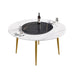 59.05" Modern Artificial Stone Round Golden Metal Dining Table, Can Accommodate 6 People Artificial Stone Turntable - White / Black59.05"W x 59.05"D x 29.53"H