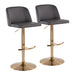 Toriano - Contemporary, Adjustable Barstool With Swivel With Rounded T Footrest (Set of 2) - Gray / Gold19.0"W x 17.5"D x 42.0"H - 17.0 lb