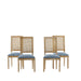 French Country Dining Chairs (Set of 4) Elegant Cane Backrest & Upholstered Seats Rustic Weathered Solid Rubberwood Frame - Slate Blue20.0"W x 22.5"D x 39.5"H - 29.98 lb