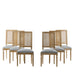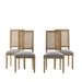 Vintage Inspired French Country Dining Chairs (Set of 4) Elegant Cane Backrest & Upholstered Seats Rustic Weathered Solid Rubberwood Frame - Blue Gray20.0"W x 22.5"D x 39.5"H - 29.98 lb