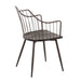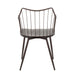 Farmhouse Styling: This chair embodies farmhouse styling with brown metal legs and armrests, and a walnut wood seat, creating a rustic yet elegant look suitable for both dining and accent seating.