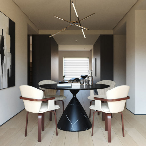 Velvet Upholstery: The chair is covered in soft, plush velvet, providing a luxurious feel and comfort for long dining experiences. Metal Frame: Th...