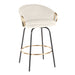 Chic Design: The Claire Counter Stool by LumiSource features a modern, chic style with a unique design that includes a rounded low backrest, sleek gold armrests, and a sturdy metal frame, making it an ideal addition to any contemporary dining area.