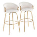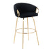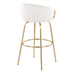 Modern Design: The Claire Fixed-Height Bar Stool by LumiSource features a chic modern style with a unique design, making it an ideal addition to any contemporary bar area. Its sleek gold armrests and metal frame enhance its stylish appearance.