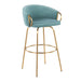 Claire - Contemporary / Glam Fixed Height Bar Stool Round Footrest (Set of 2) - Light Blue / Gold19.5"W x 21.0"D x 38.25"H - 16.5 lb