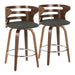 Cosini - Mid-Century Modern Fixed Height Barstool With Swivel With Round Footrest (Set of 2) - Walnut / Charcoal18.0"W x 18.0"D x 35.0"H - 14.5 lb