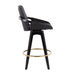 Contemporary Design: The Cosmo Counter Stool by LumiSource features a modern aesthetic, combining a sleek faux leather seat with a stylish wood armrest and frame. Its design is further enhanced by a chic gold footrest, creating a sophisticated look for any space.
